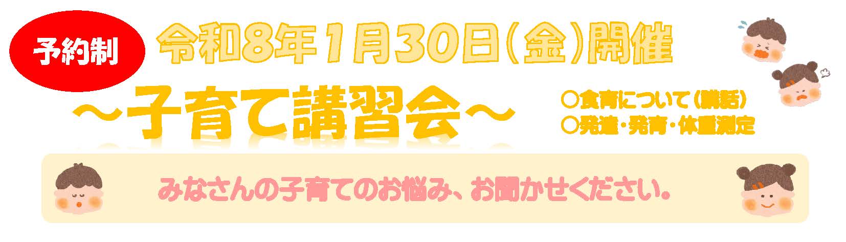 | 【日 時】 1月 日( )10:00-11:00 【対 象】 妊婦さん、未就学児とその保護者 【場 所】 児童室・体育室 【内 容】 「 」 ※お子様は別室にてお預かりいたします。 |