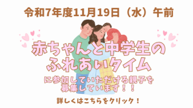 【参 加】 各日 定員5組 【費 用】 200円 【持ち物】 保護者様用のマグカップ、 バスボムに入れるおもちゃ(2㎝程度) お子様用の水分補給 【申 込】 9月25日(土)~ 定員が埋まり次第終了とさせていただきます。 |